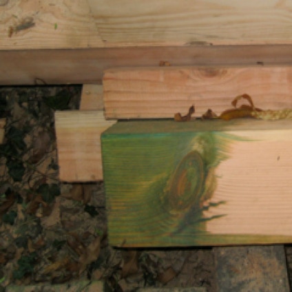After my initial shock about someone asking for such a “sticker”, I realized what was happening. Everyone hears on an almost daily basis just how toxic our lives are and how the products we use on a regular basis are costing us our health. Timber products that are designed to be exposed to the elements such as wood deck framing, fences -- or in this case, large posts and beams supporting a common stairway in a large housing project -- must be treated with a preservative. This preservative must protect against weather damage and insect infestation. In the Southern California climate our insects are termites, in northern climes you can expect carpenter ants. Whatever the flavor, they can chew a big expensive hole in your wood.