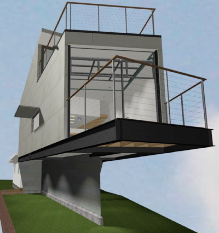 All we need is a little creative problem-solving to get around all the code restrictions. Here we have proposed a structure that will add a second dwelling unit to an existing single family dwelling in Venice CA. In order to get around the 4-car requirement for two dwellings in this neighborhood, we needed to elevate the structure above the cars. This means that effectively the living space starts on the second floor and the cars have to park around the building structure supporting the second floor. All this leaves is a pie-shaped building with a blunted triangular living space above.