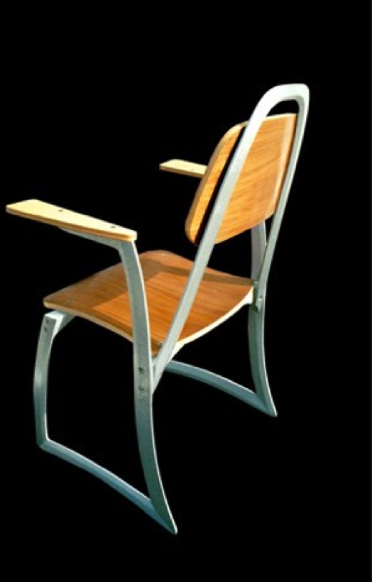 Birch and walnut veneers complement the brushed aluminum frame and stainless steel fasteners.